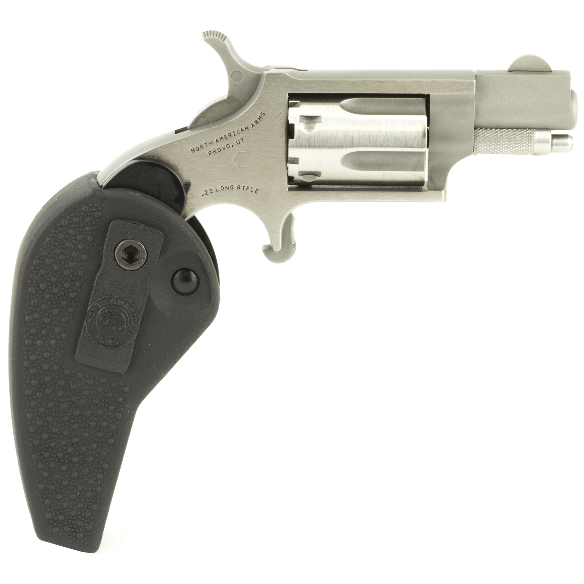 North American Arms, Mini Revolver, Single Action Only, Revolver, 22LR, 1.125″ Barrel, Matte Finish, Stainless Steel, Silver, Holster Grip, Fixed Sights, 5 Rounds