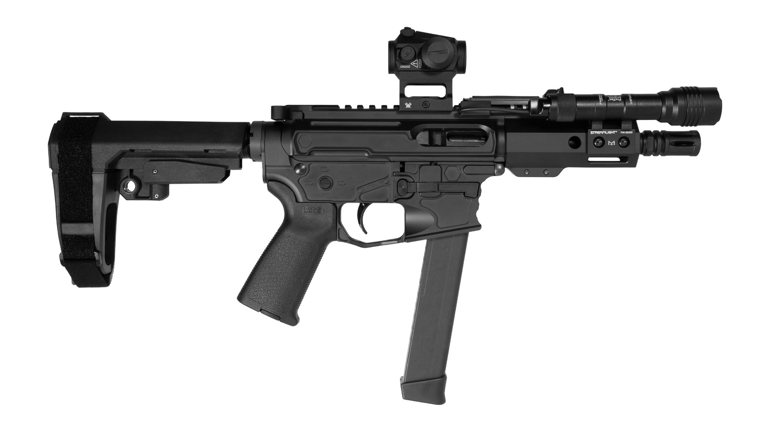 Shark Coast Tactical MNPCC00672 Midnight Bundle 9mm Luger 7.50″ Black Melonite Barrel, Aluminum Receiver w/Picatinny Rail, M-LOK Handguard, Vortex Red Dot, Streamlight w/Pressure Pad
