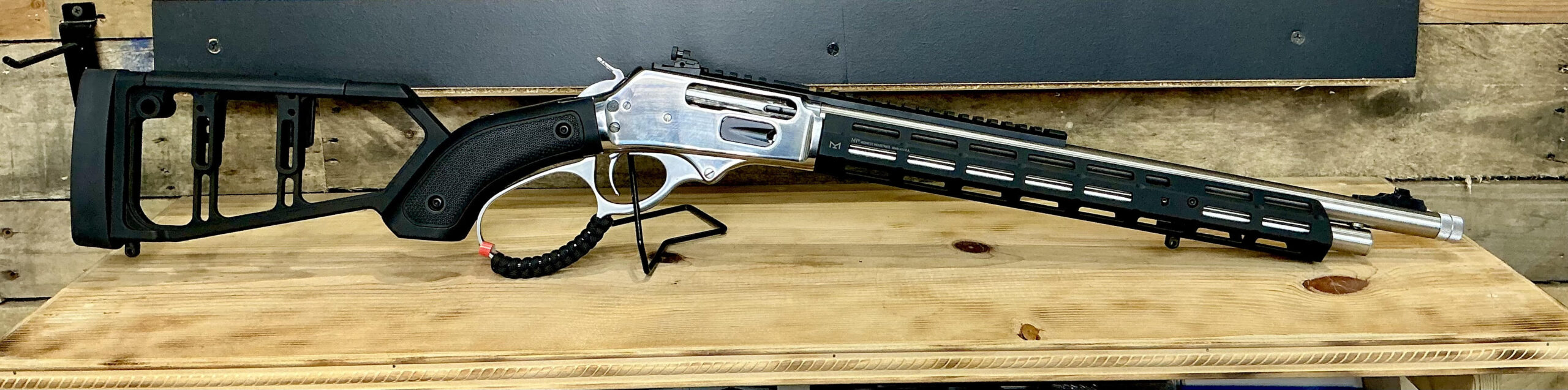 Rossi, R95, Laminated, Lever Action Rifle, 45-70 Government, 18″ Barrel, Stainless Steel Finish, Silver, Laminated Wood Stock, 5 Rounds