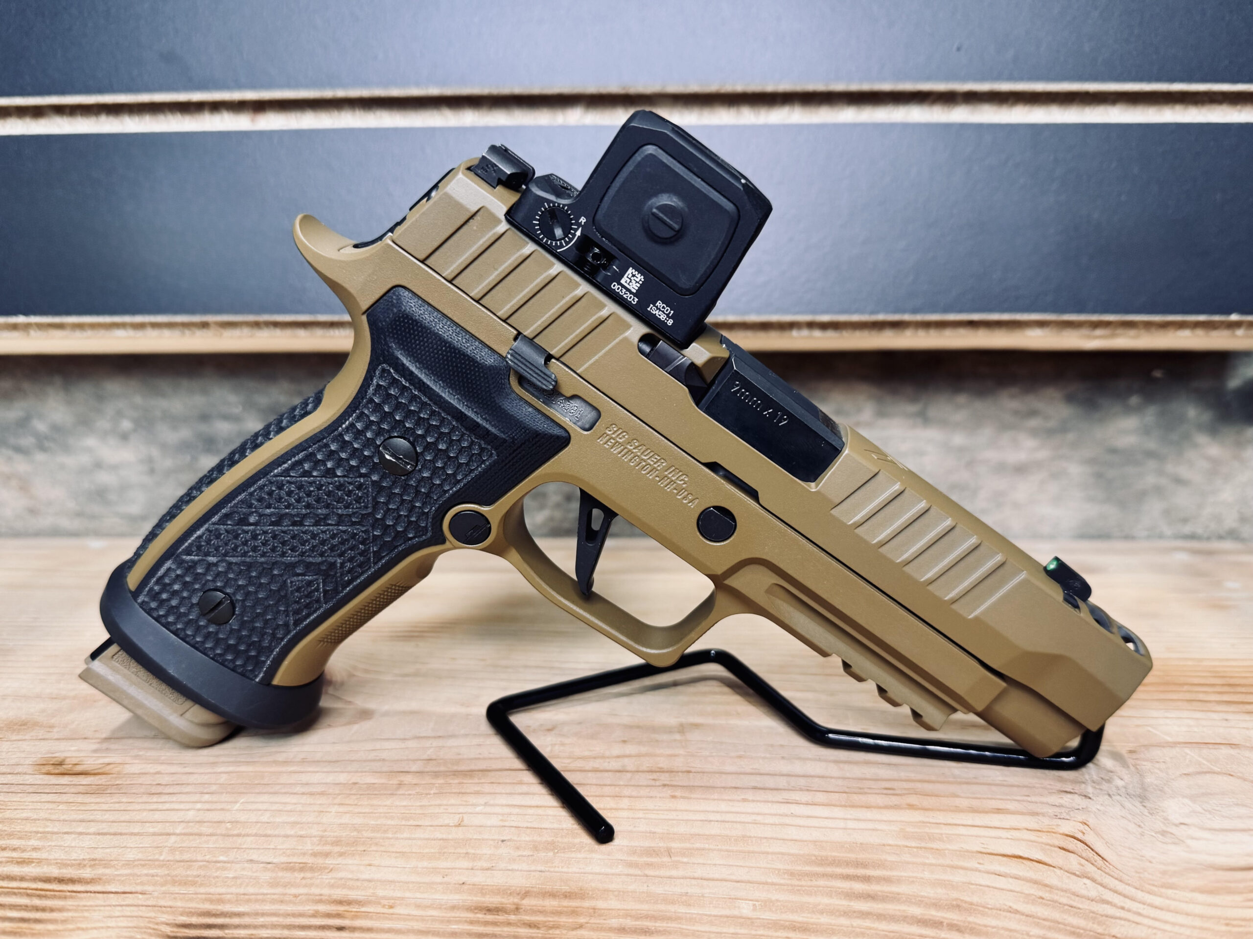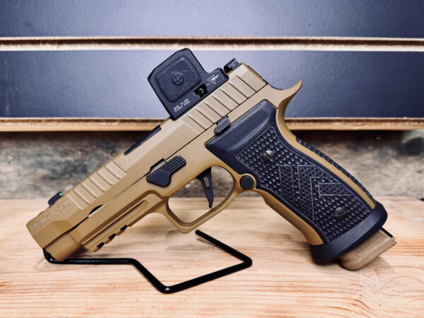 The Sig Sauer P320 AGX is a variant of the popular P320 series, known for its modular design and versatility. The P320 is a striker-fired, semi-automatic pistol that has gained a reputation for reliability and performance, making it a popular choice among law enforcement and civilian shooters alike. The combination of the Sig Sauer P320 AGX and the Trijicon RCR red dot optic creates a highly effective platform for both competitive shooting and personal defense. The modularity of the P320 allows for customization, while the RCR enhances aiming speed and accuracy, making this setup a popular choice among shooters looking for a reliable and versatile handgun.